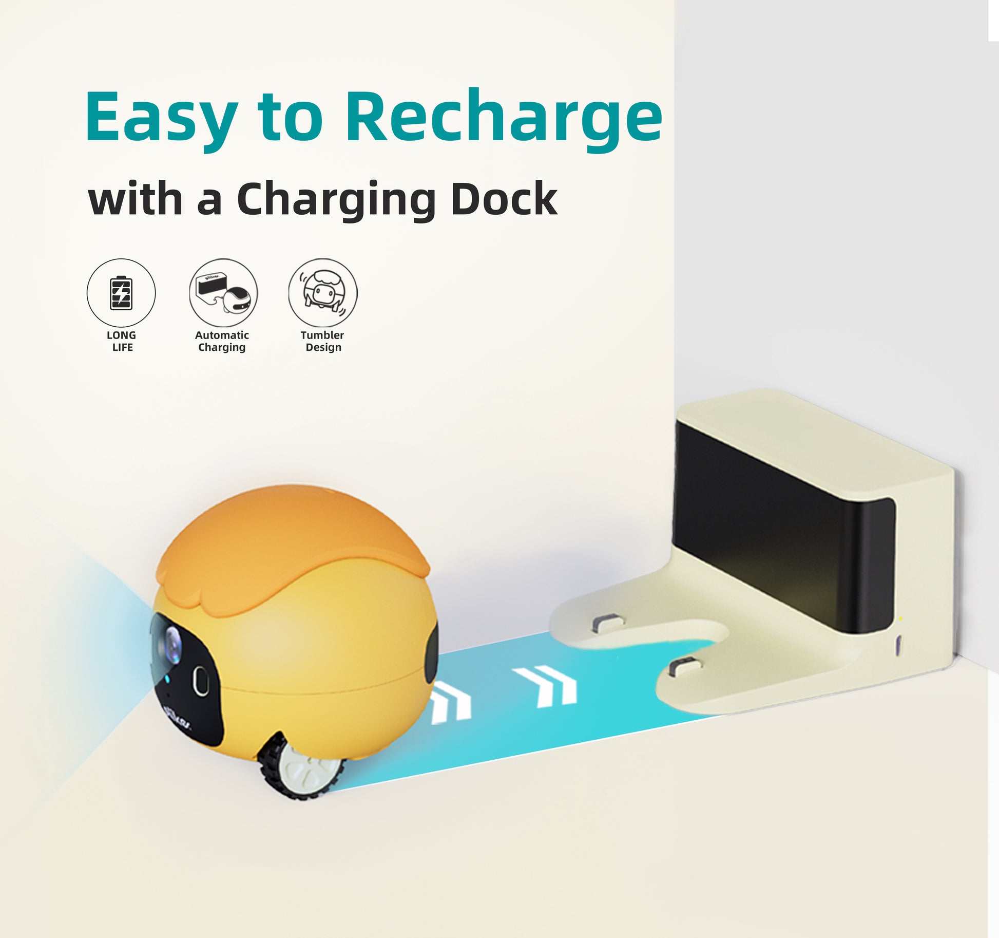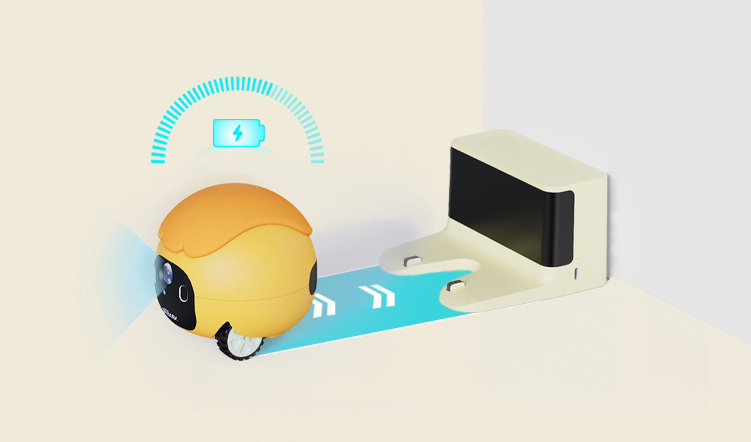 "Always ready for action."Returns to charging dock at 20% battery (6+ hours playtime per charge).