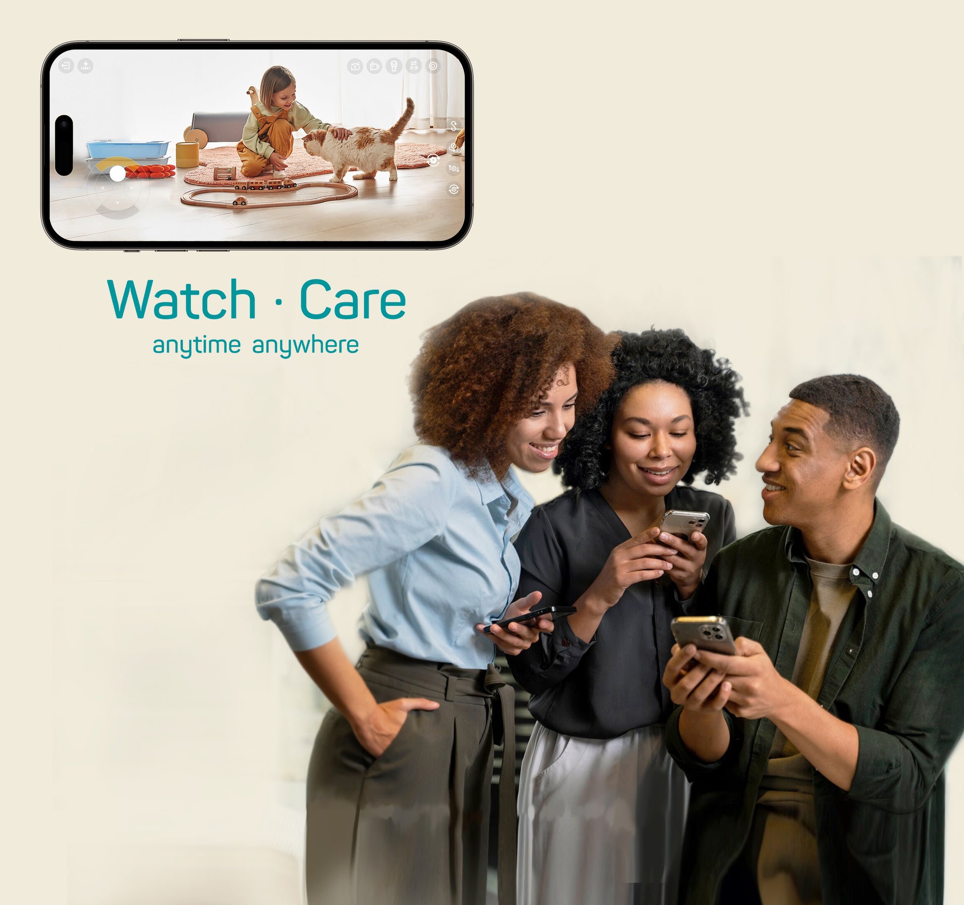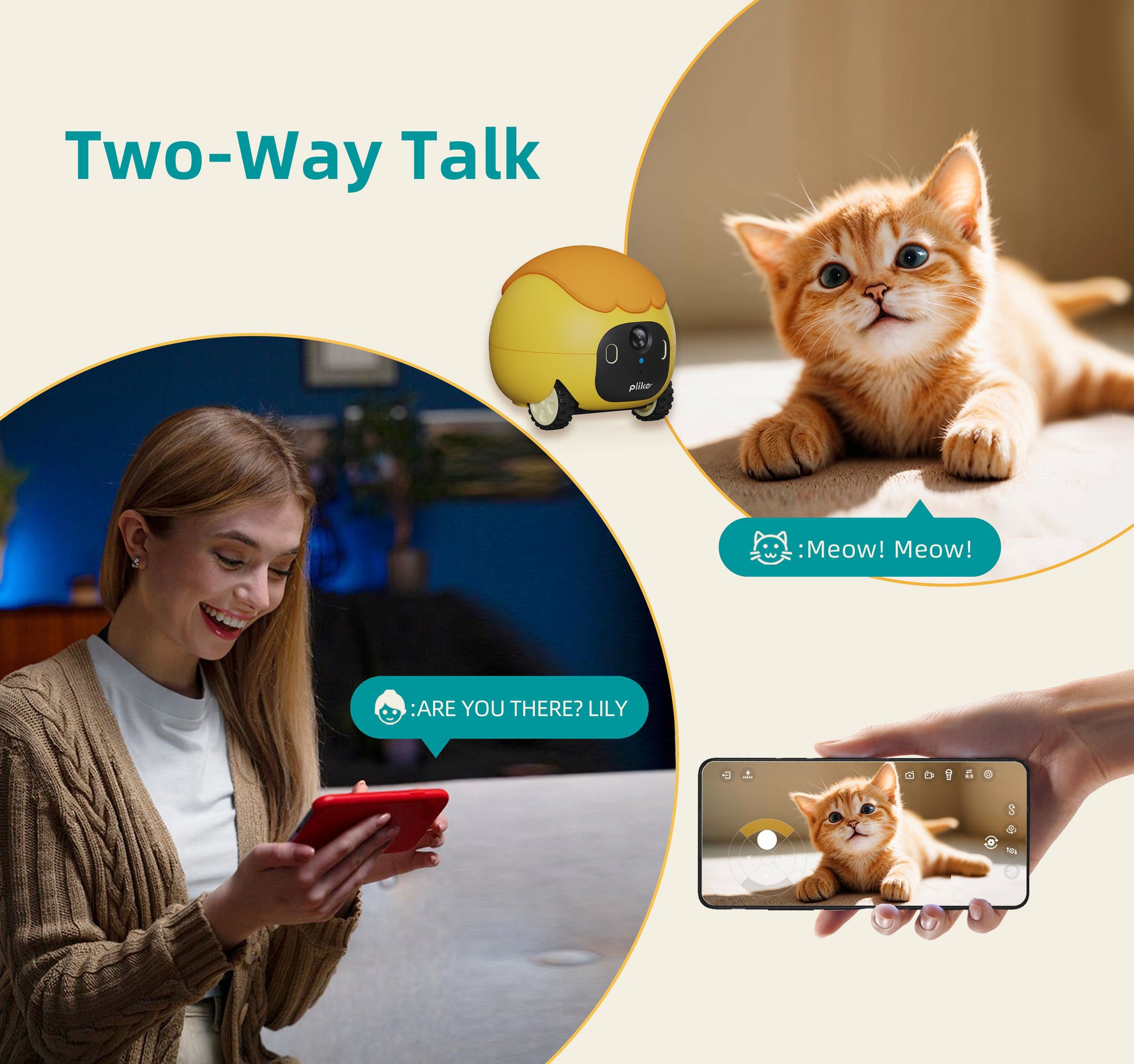 "Talk, listen, and comfort your pet remotely."Built-in microphone and speaker let you soothe anxious pets or hear their reactions in real time.