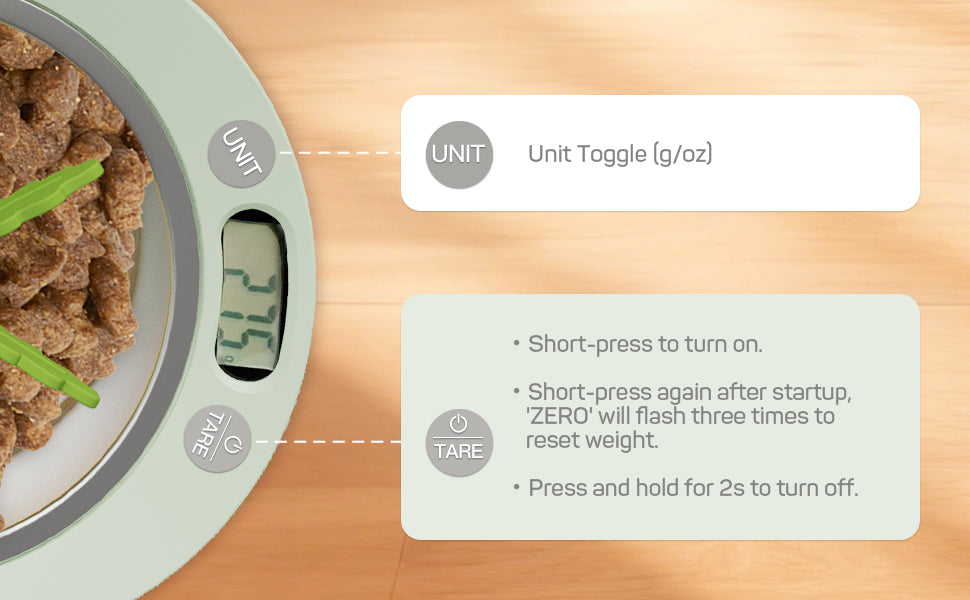• Precision Weighing (1g-3kg): Built-in digital scale with clear LCD display + TARE function—measures food intake accurately to support weight management and balanced nutrition.